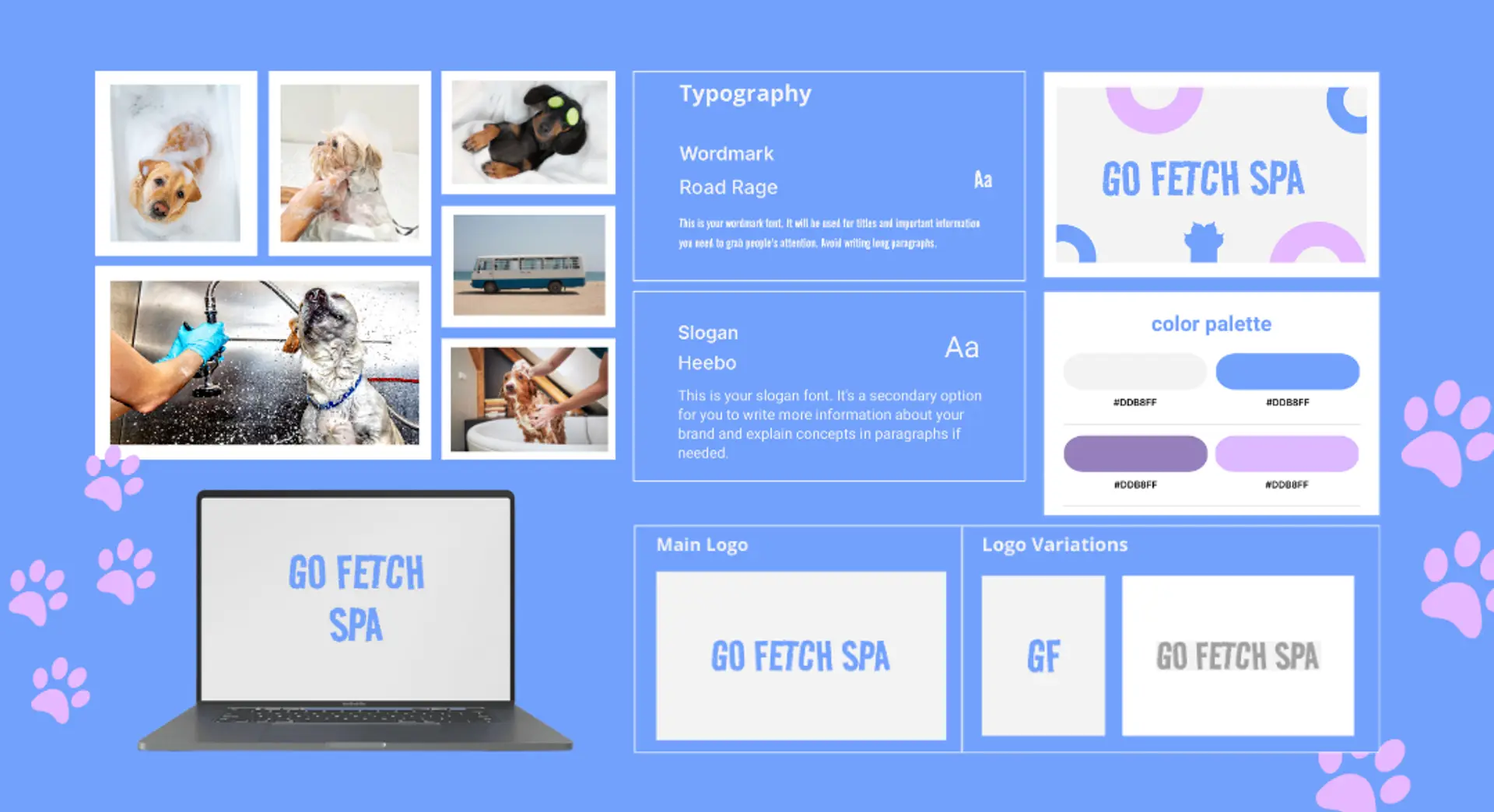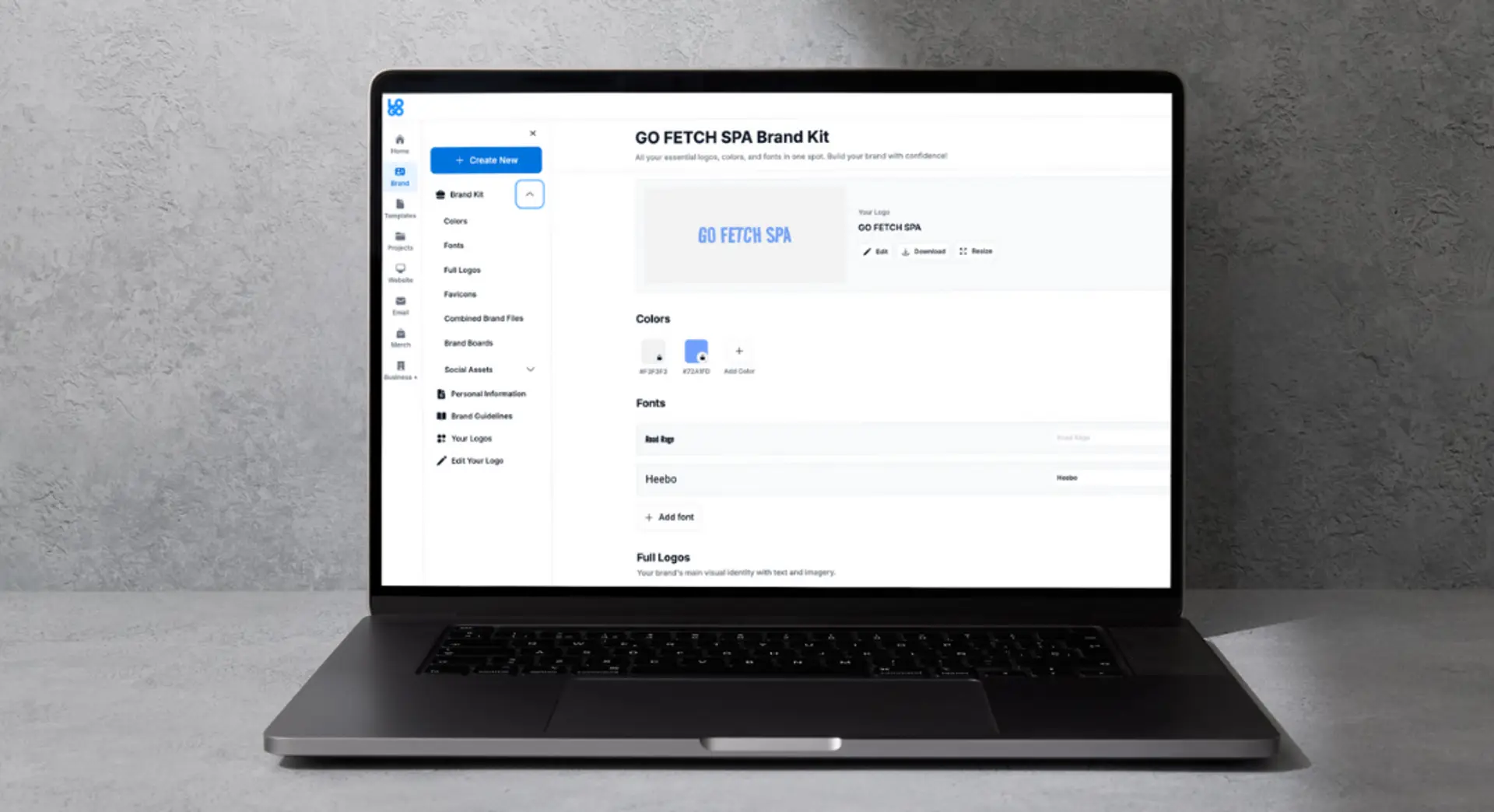 Think of a brand kit as your business’s visual toolbox. It includes your logo, brand colors, fonts, and other key elements that define your business's look.