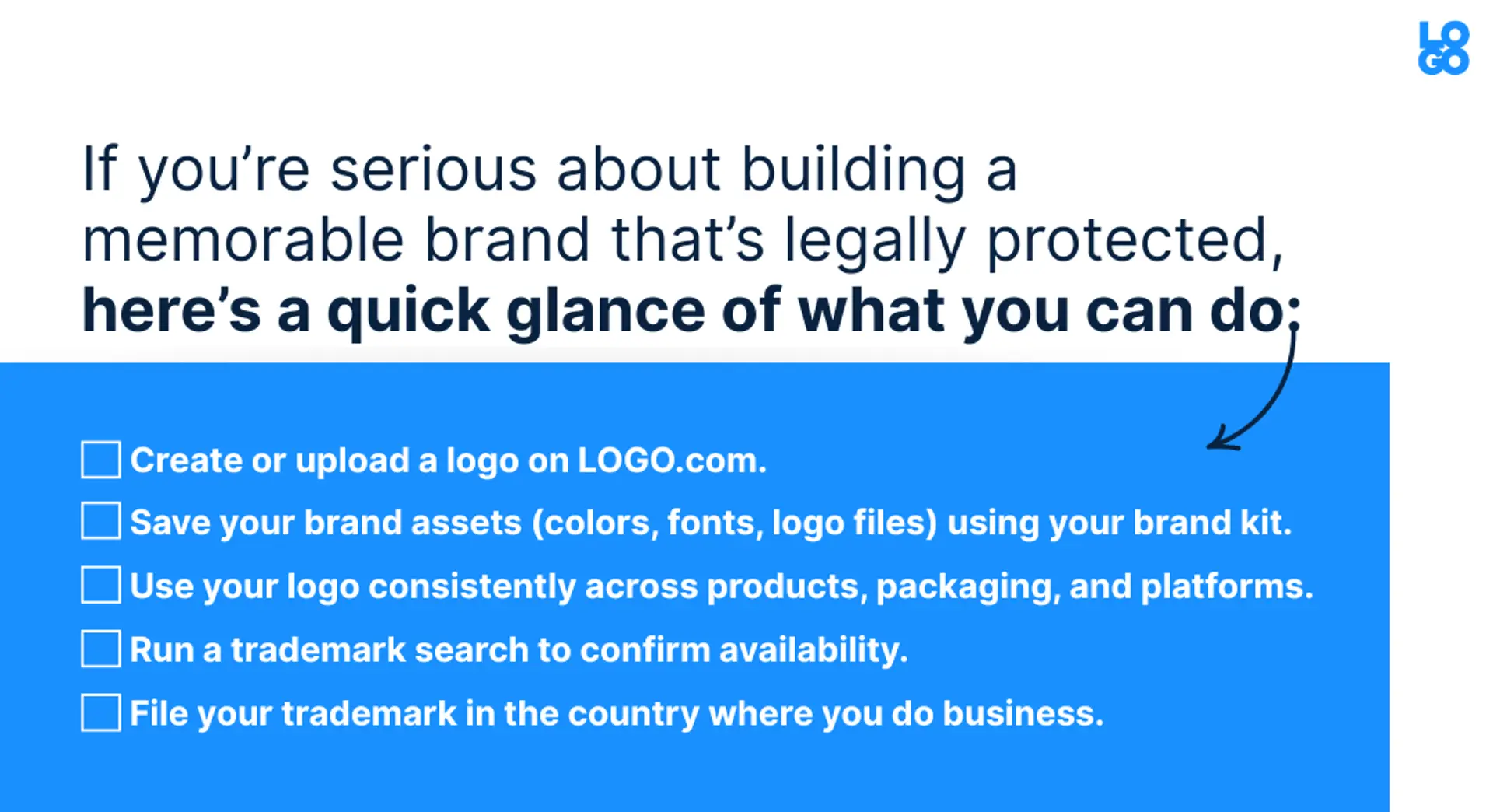 You don’t need to hire a lawyer to do it (though it is helpful), you just need to start with a logo you love and follow a few smart steps.